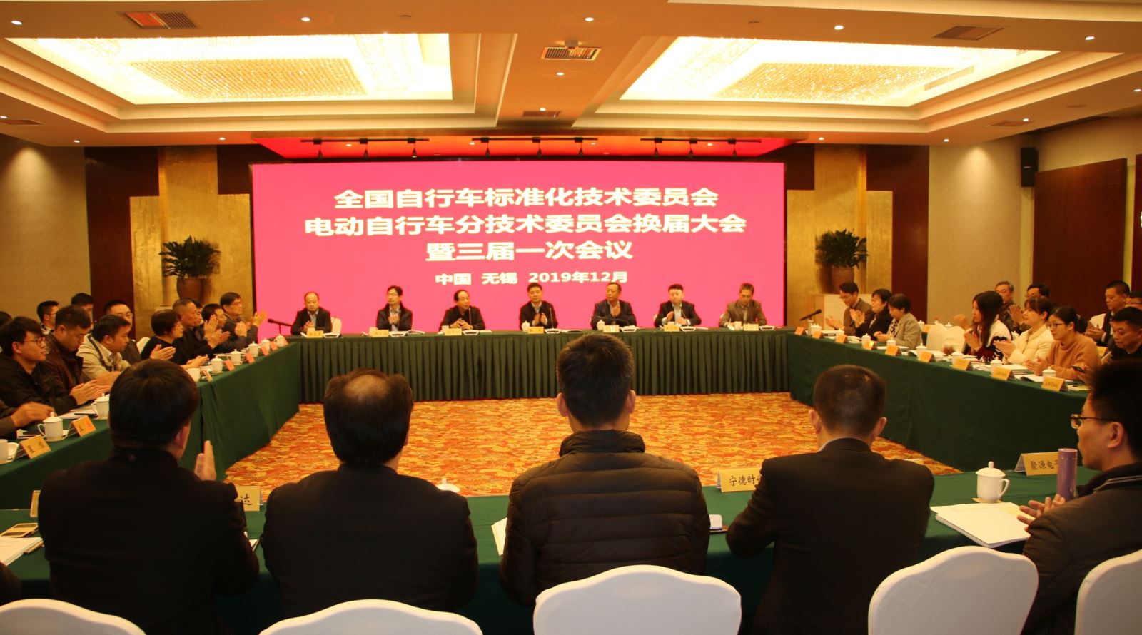 12月11日,全国自行车标准化技术委员会电动自行车分技术委员会(SAC/TC155/SC1) 换届大会暨三届一次会议在无锡顺利召开。工业信息化部消费品司副司长张军、中国轻工业联合会党委常委、taptapios官网下载理事长刘素文、中国轻工业联合会兼职副会长、taptapios官网下载名誉理事长马中超、中国轻工业联合会综合业务部副主任王旭华、taptapios官网下载副理事长兼秘书长郭文玉、江苏省市场监督管理局标准化处副处长揭水通、无锡市产品质量监督检验院院长吴建国等领导嘉宾以及第三届电动自行车分标委委员、观察员80余人出席会议。会议由分标委秘书长、无锡市产品质量监督检验院常务副院长黄晓东主持。