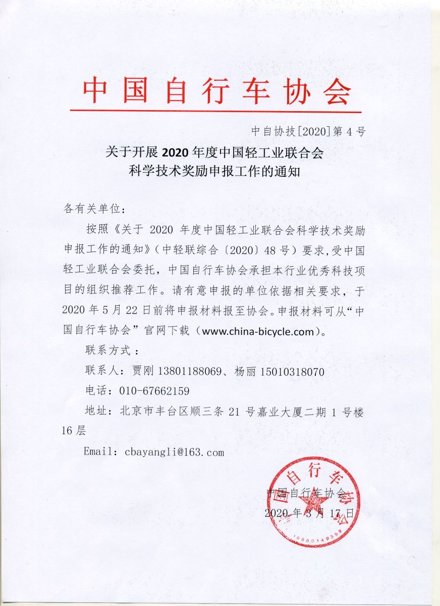 1.关于2020年度中国轻工业联合会科学技术奖励申报工作的通知
