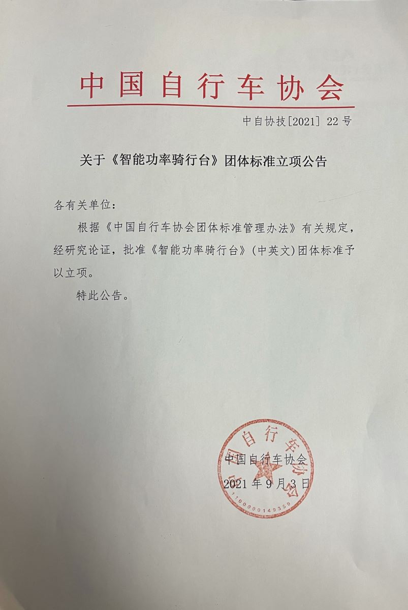 关于《智能功率骑行台》团体标准立项公告