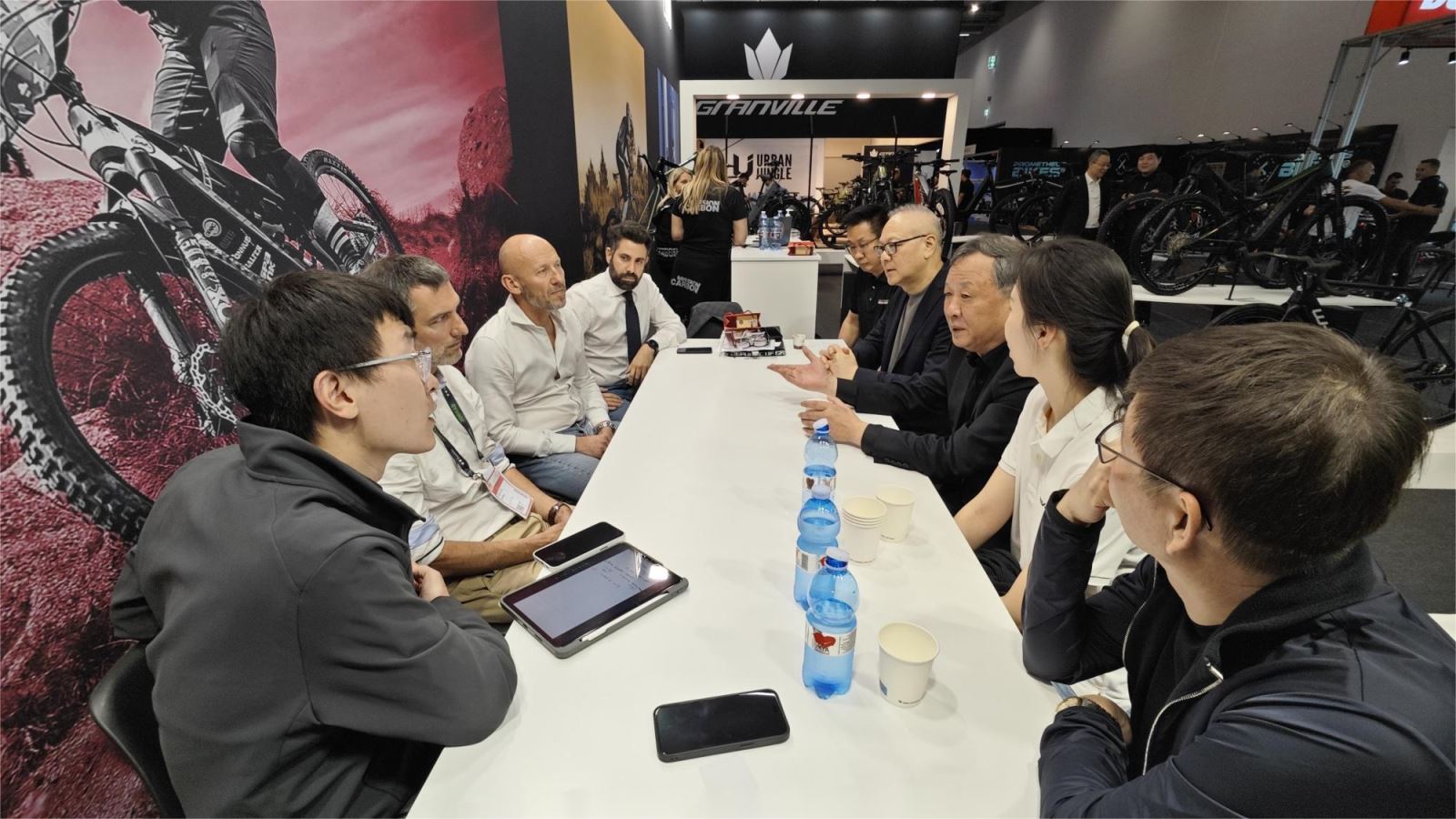 展会期间,刘素文理事长还会见了欧洲自行车工业联合会(CONEBI)会长帕泽瑞。刘理事长首先对帕泽瑞当选新一届欧洲自行车工业联合会会长表示祝贺,随后双方就中欧市场变化、生产制造绿色发展、产业合作等双方关心的话题进行了深入交流,上海凤凰、天津金轮、宁波巨隆等协会副理事长一同参加会见。