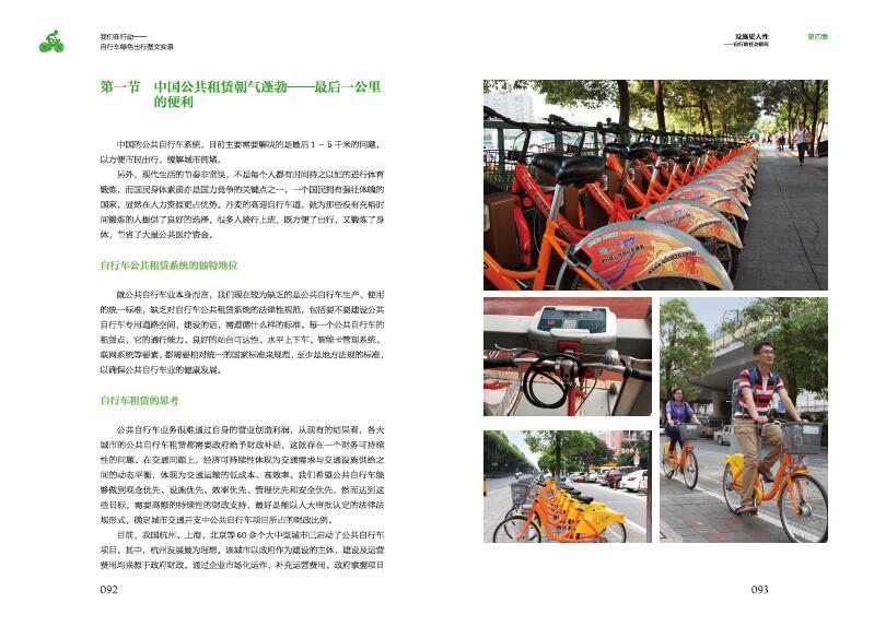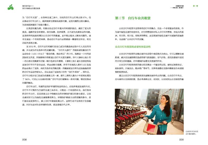 全书共分为“全球在行动”“中国在行动”“道路在完善”“设施更人性”“行业在行动”五部分,重点介绍了国内外自行车绿色出行的数据和案例。全方位展示了绿色出行的生活方式,宣传了低碳环保理念,同时为政府有关部门制定自行车设施建设、道路规划等提供有益参考。