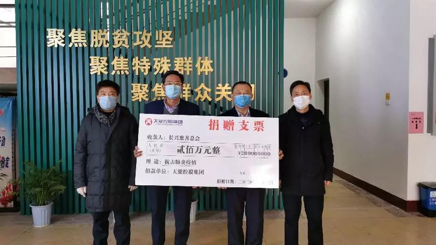 2月3日,受张天任董事长委托,天能集团副董事长张敖根带着200万元的支票,专程赶到长兴慈善总会,将支票交到了长兴县慈善总会会长杨福成的手上。
