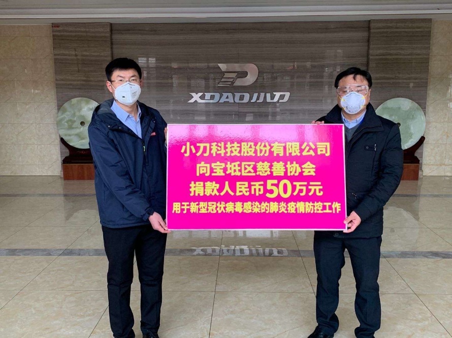 无锡小刀电动科技股份有限公司为抗击新型冠状病毒肺炎疫情,先后向无锡东港慈善总会和天津宝坻慈善总会各捐赠了50万元人民币,合计100万元善款用于疫情防控工作。此外,小刀还向各地防疫检查点捐助帐篷3000余顶、口罩和消毒液若干。