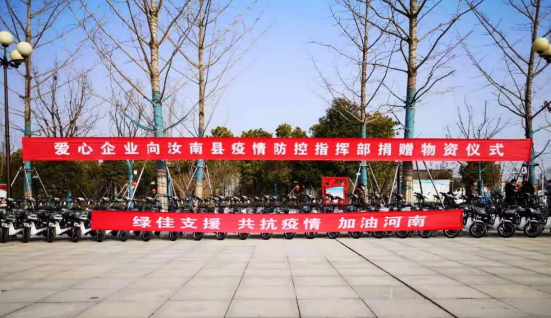 2月8日,面对汹汹疫情,绿佳集团河南基地再次通过汝南县红十字会向汝南县疫情防控指挥部捐助100辆国标电动车,用于保障汝南疫情期间身处一线的基层工作人员的工作效率与出行安全。