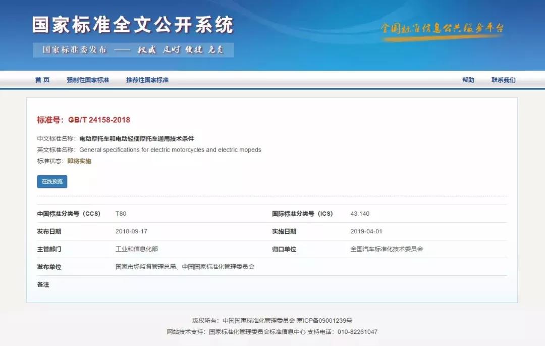 日前,国家市场监督管理总局、中国国家标准化管理委员会共同发布电动摩托车和电动轻便摩托车的国家标准。至此,我国现阶段电动两轮车全部标准已出台,且都集中于明年4月集中实施。
