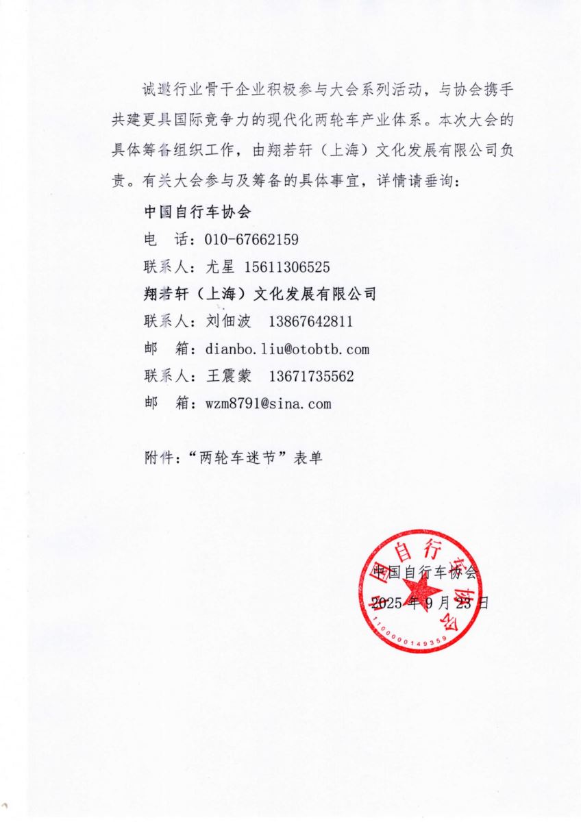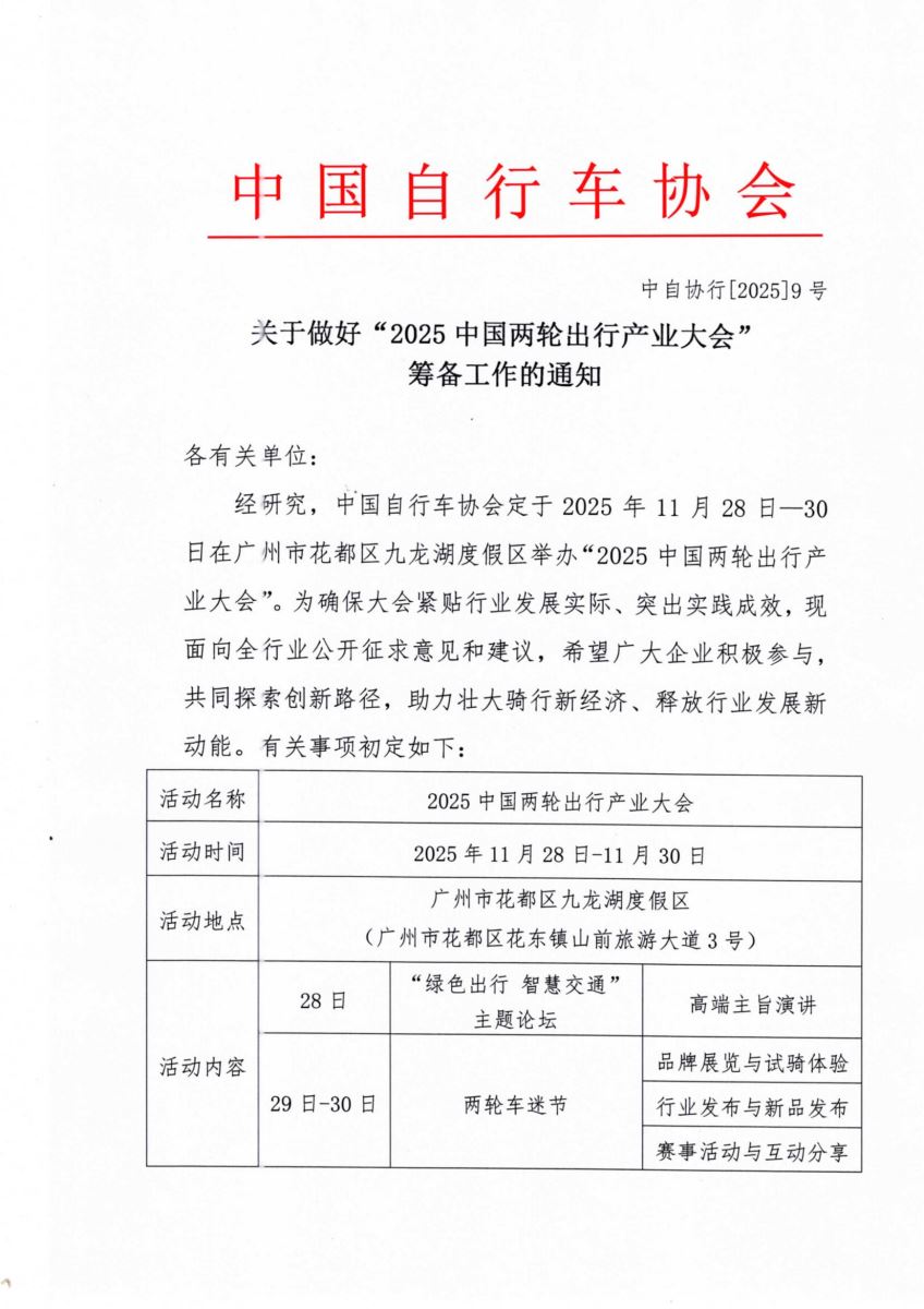 关于做好“2025中国两轮出行产业大会”筹备工作的通知