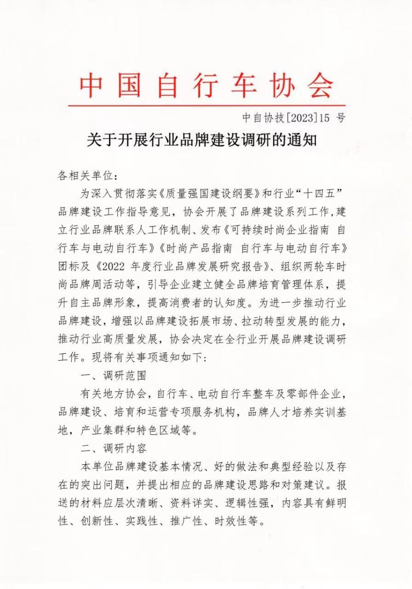 关于开展行业品牌建设调研的通知