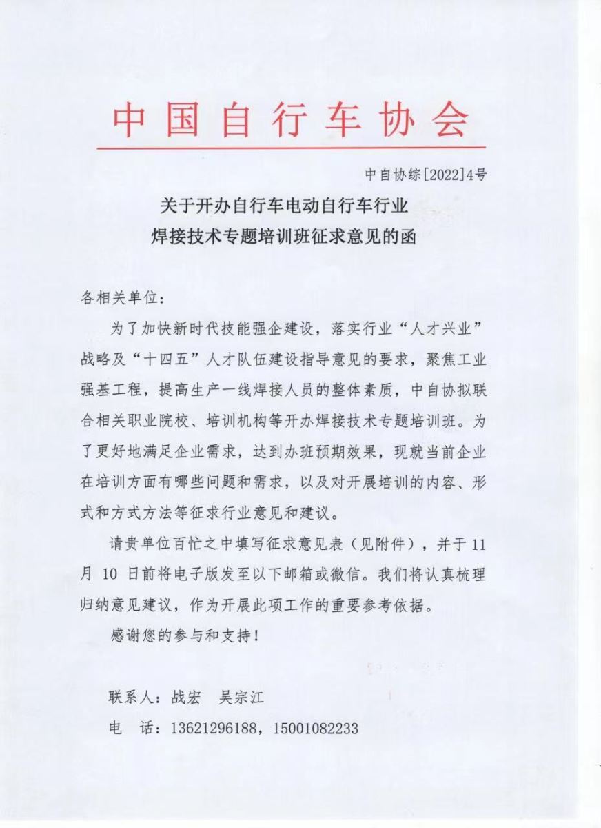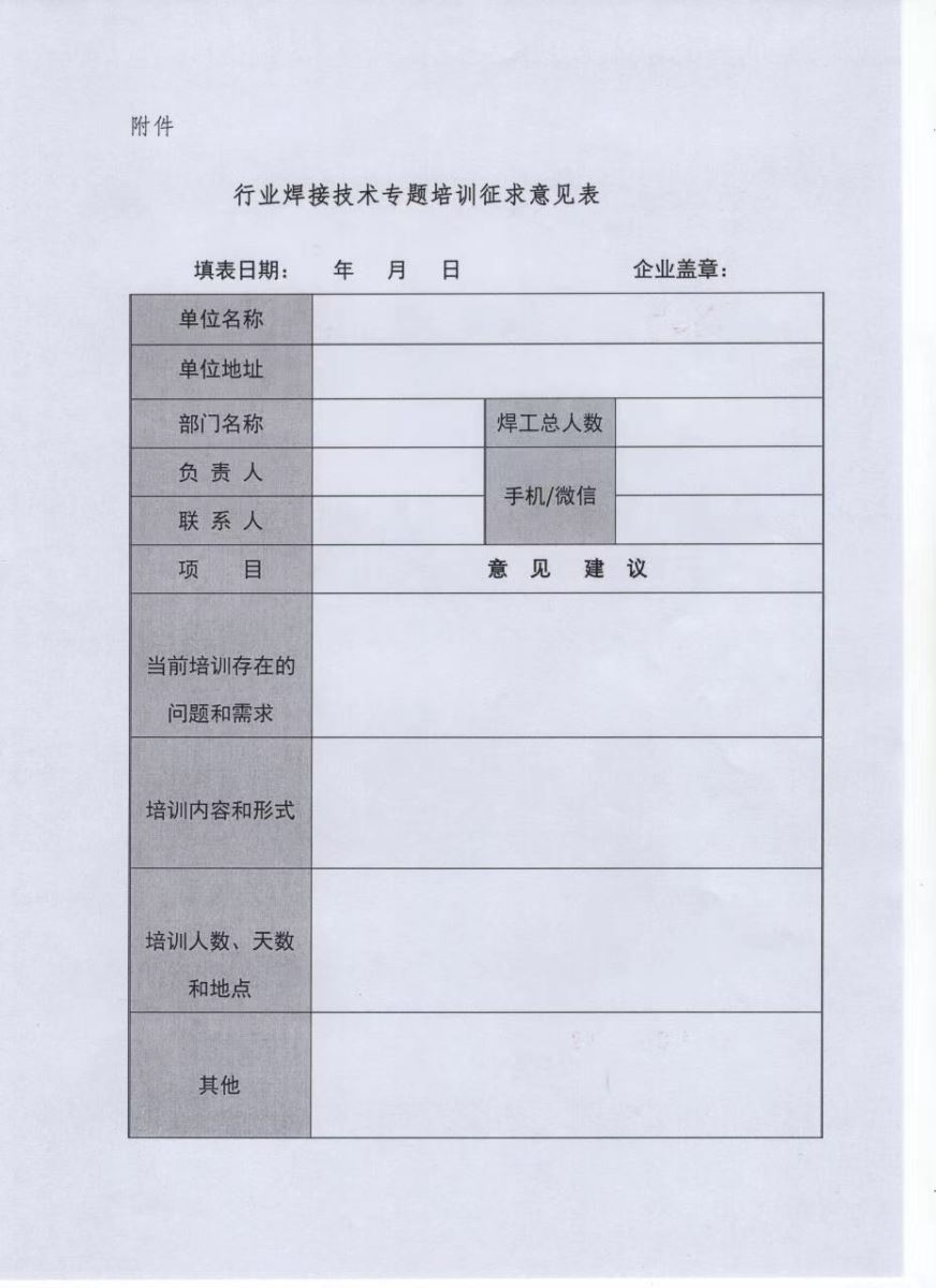 关于开办taptap点点亚洲体育焊接技术专题培训班征求意见的函