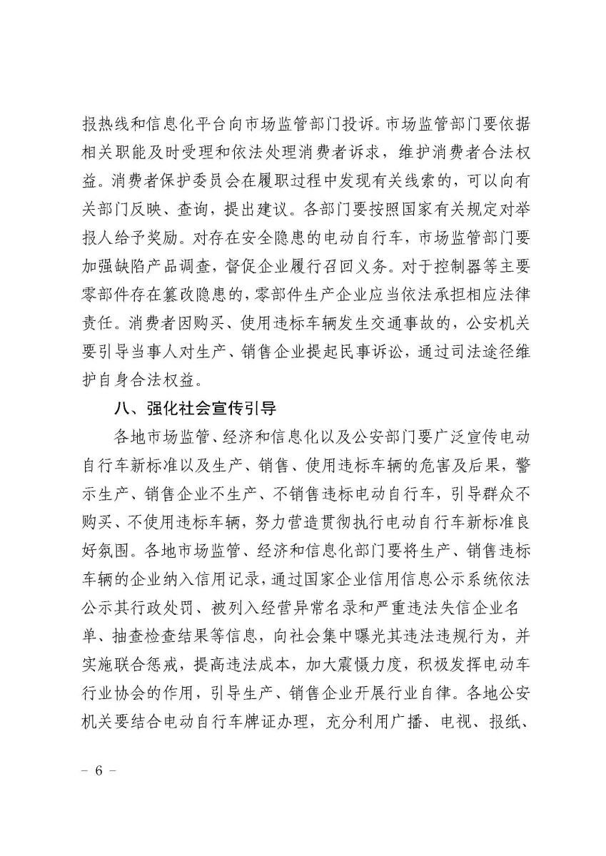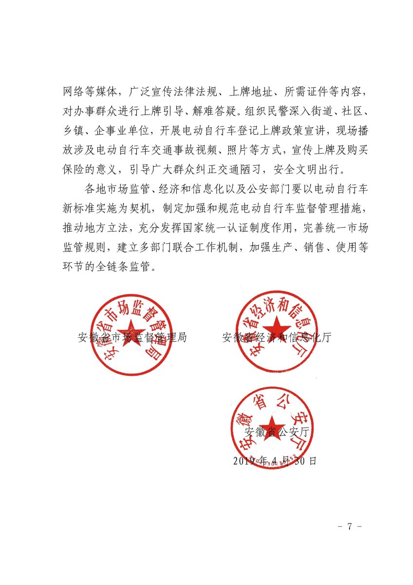 安徽省市场监管局、经济和信息化厅、公安厅关于加强电动自行车国家标准实施监督的通知 来源:安徽省市场监监督管理局 作者: 发布时间:2019-05-15 16:11 摘编:中自协; 摘编日期:2019-5-15