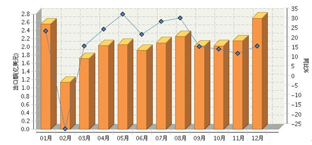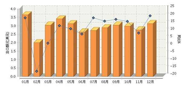1.出口:2014年零部件出口额为26.3亿美元,同比增长19.6%。见图4。