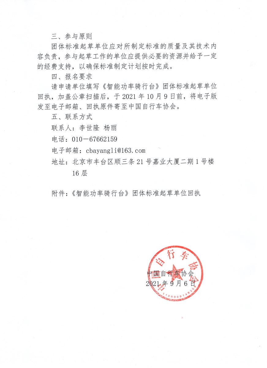 《智能功率骑行台》团体标准起草单位回执