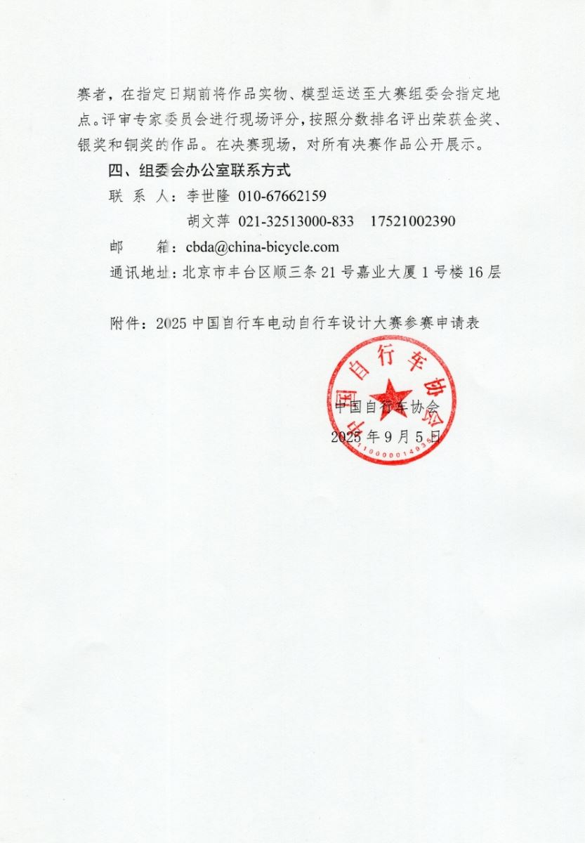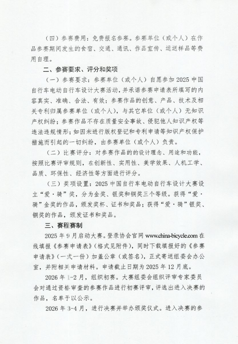 关于举办2025中国自行车电动自行车设计大赛的通知