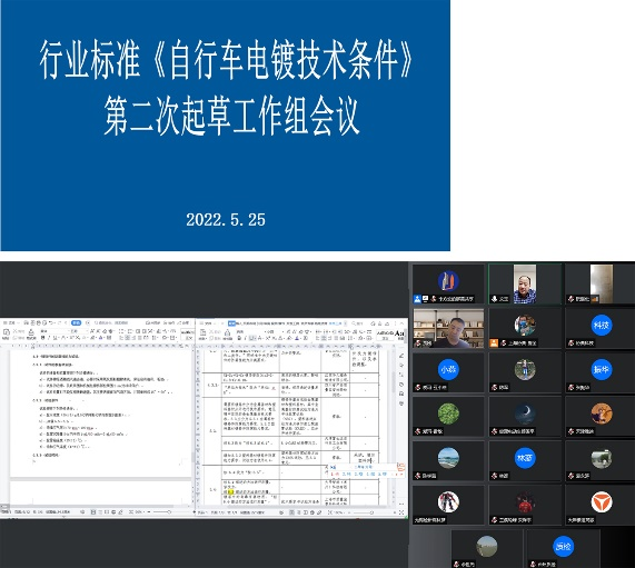 全国自行车标准化技术委员会组织的行业标准《自行车电镀技术条件》《自行车 辐条和条母》《电动自行车 后视镜》起草工作组第二次会议分别于2022年5月25日、26日和27日以视频会议的形式顺利召开。