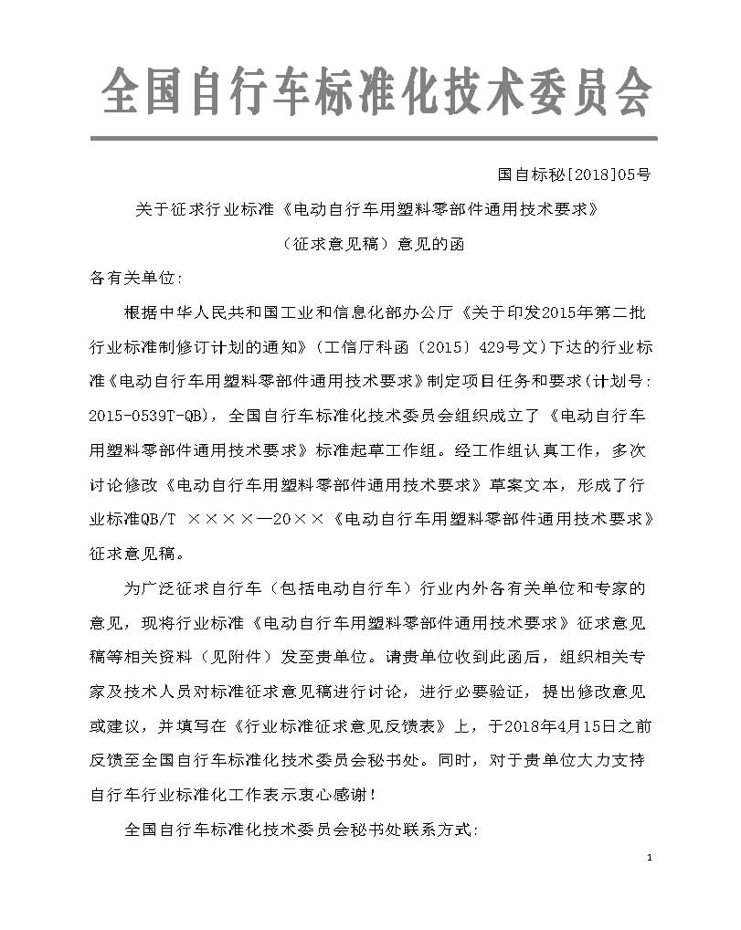 附件1:行业标准《电动自行车用塑料零部件通用技术要求》征求意见稿//m.scykdq.com/Content/Uploads/2018.03/d35cffac-4e91-43b3-b8ce-aebb975fa81b.docx